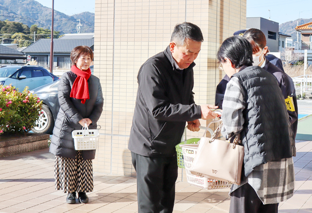 蒲郡市神ノ郷町の農業杉浦加津代さん(当時73)が殺害された事件は10日、未解決のまま発覚から10年を迎えた。蒲郡署は同日、市内の食品スーパーで情報提供を呼びかけた。加津代さんの長男司さん(61)と妻の多香子さん(61)も参加し、「情報提供をお願いします」と声を張った。