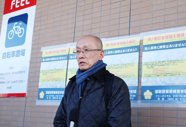 この日は、1999年に名古屋市西区の自宅で妻を殺害された高羽悟さん(69)も駆けつけ、広報活動に加わった。司さん夫妻とは警察関係者を通じて3年前に知り合い、活動に協力している。「(自分の事件のように)26年たって捕まることもある。諦めないでほしい」と話した。