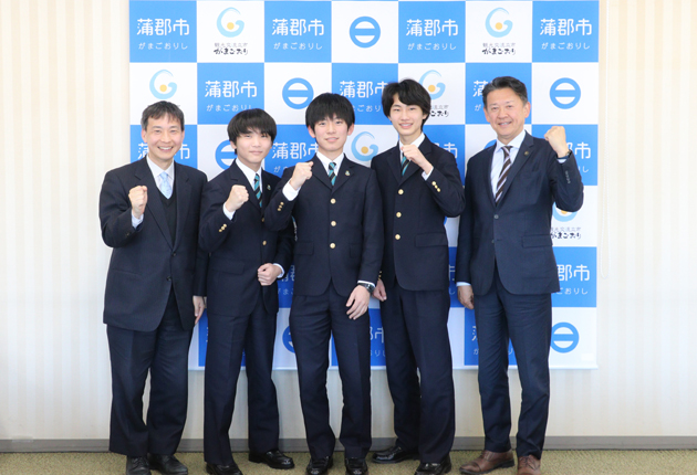 鈴木市長(右端)に抱負を伝えた海陽中等教育学校の皆さん=蒲郡市役所で(提供)