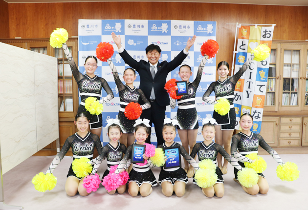 全日本チアリーディング&ダンス選手権大会の「USA Nationals 2026」と選抜チーム大会「USA The PEAK 2026」に出場を決めた豊川市内在住の小中学生10選手が12日、豊川市役所を訪れ、竹本幸夫市長に出場を報告した。