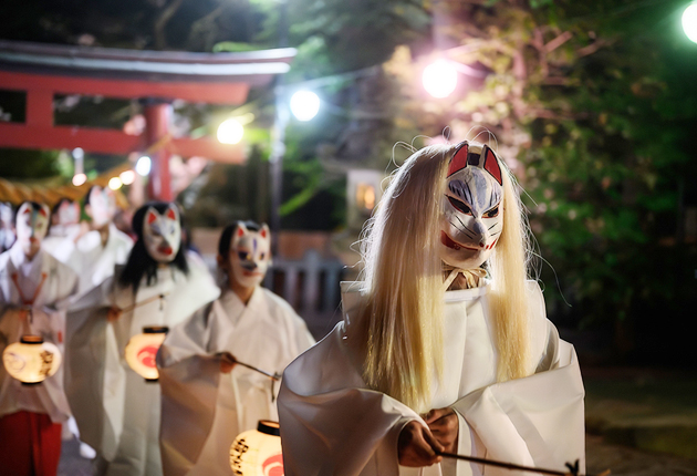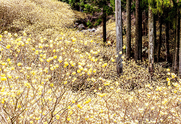 準グランプリに選ばれた朝倉稔詞さん(豊橋市)の「狐の行列」は、為当(ためとう)稲荷神社(豊川市)の「花の撓(とう)大祭」で撮影。背景を適度にぼかし、参道の灯(ともしび)だけで捉えた狐の面の立体感が際立った。準グランプリのもう1点は、村瀬佳子さん(岡崎市)の「黄色の波」が受賞。新城市作手に群生したミツマタとスギの木立を巧みに配置した構図が評価された。