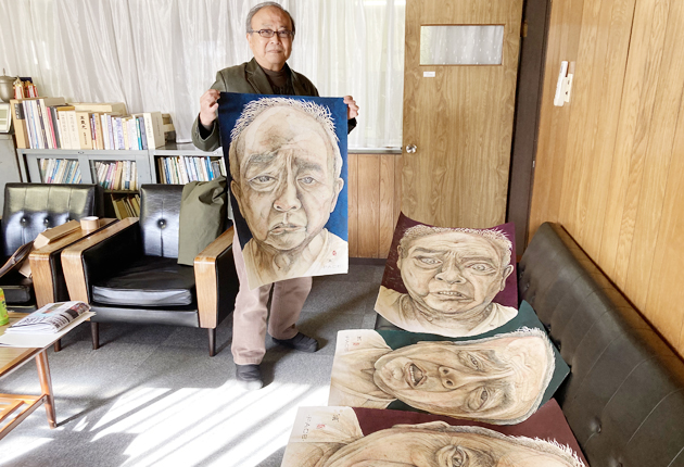 大野代表が49回目の从展に出品する「平凡な日常―F・A・C・E―」の4点(東海日日新聞社で)