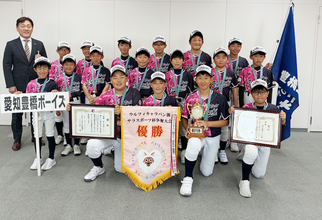 「スターゼンカップ第56回日本少年野球春季全国大会」に出場する「愛知豊橋ボーイズ」が23日、豊橋市役所を訪れ、原田憲一教育長に出場を報告した。
