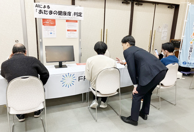 AI事業のFRONTEO(フロンテオ、東京都港区)はこのほど、蒲郡市で開かれた「いきいき市民健康づくり講演会」で、塩野義製薬と共同開発したウェブアプリケーションサービス「トークラボKIBIT(キビット)」を使った「あたまの健康度」測定を来場者に体験してもらった。