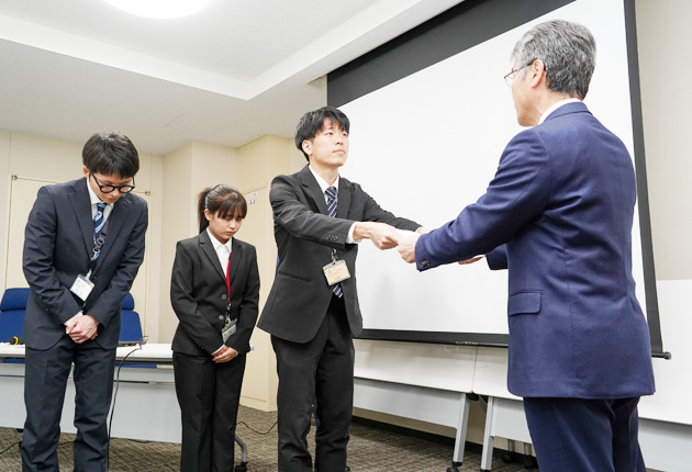 新城市役所で26日、30歳以下の職員による特命チーム「Z世代課」が、下江洋行市長らに職場環境改善の提言を行った。「Zがつくる働き方の新城(常)識」というキャッチコピーの下、人事異動方針の見直し、繁忙部署に対する業務応援制度の導入といった対策を求めた。