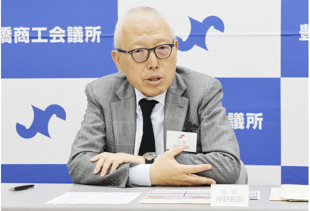 新アリーナについて語る神野会頭(豊橋商工会議所で)