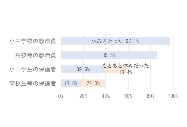 教職員と保護者の休暇を取得した割合(%)
