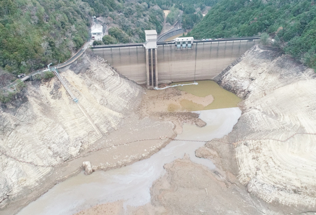 宇連ダムでは底にたまった水をくみ上げて活用している(水資源機構提供)