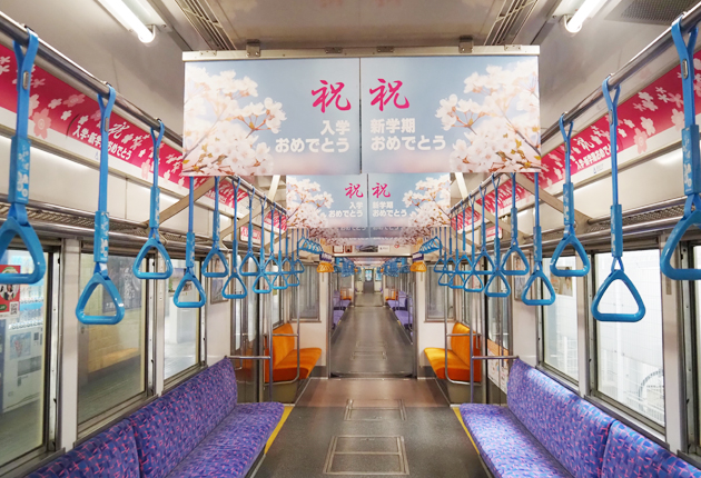 車内も入学ムードでいっぱい(渥美線新豊橋駅で)