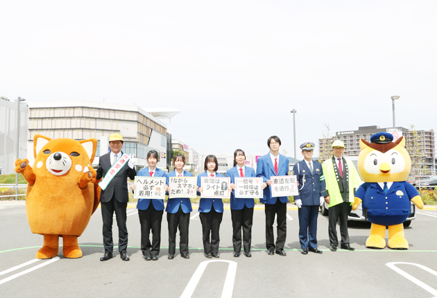 春の全国交通安全運動(6日~15日)に先立ち、5日、豊川市白鳥町のイオンモール豊川で、東三河地区交通安全出発式とキャンペーンが実施された。