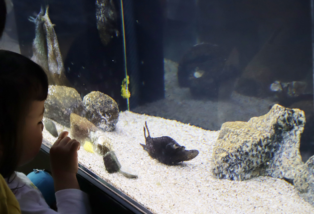 展示されているアメフラシ(蒲郡市竹島水族館で)