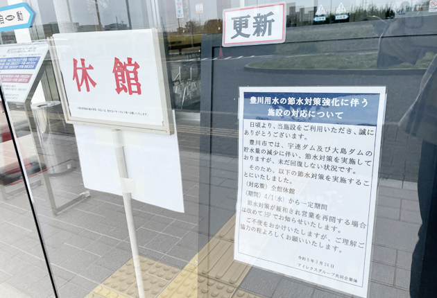 また、今月からは屋内温水プール・小坂井B&G海洋センターが臨時休館となり、ふれあい交流館・本宮の湯も弱冷水風呂を休止している。先月限りで退職した60代の男性は「運動不足解消のため、友達と温水プールに通うつもりだった。早く再開してほしい」と話した。