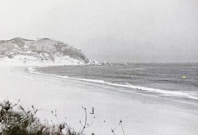 1960年頃の恋路ヶ浜と日出の石門(西山地区提供)