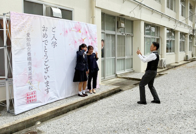 豊橋商業高校で入学式/趣向凝らしフォトスポット登場