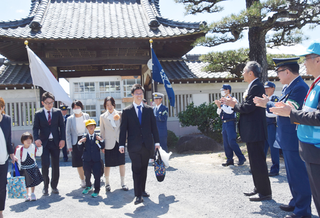新1年生の初登下校日となった8日、新城署は新城市役所などと連携し、市立新城小学校(児童数283人)で入学式の下校時間帯に見守り活動を行った。 活動には、本藤幹信署長や署員、下江洋行市長、市職員、新城設楽振興事務所職員、防犯協会連合会職員、...