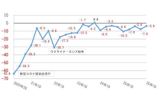 全産業の業況判断DIはマイナス3・6(前回調査比4・0ポイント上昇)。前回調査の悪化から持ち直したものの景気回復は足踏み状態で、4~6月期は再び悪化する見通しだ。