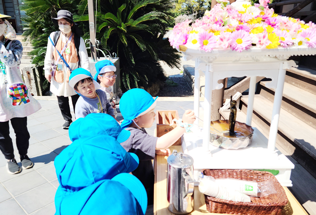 福江保育園園児が花御堂参拝/田原