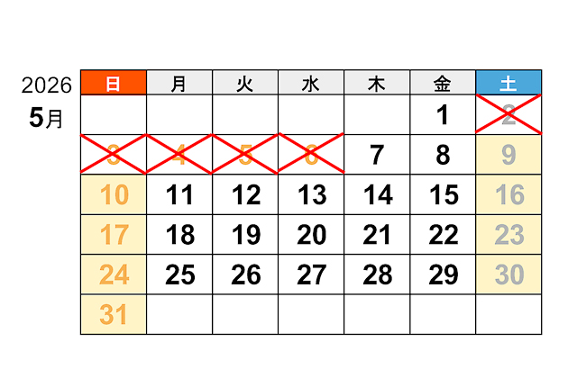 5月の休日割引適用外の案内カレンダー(同)