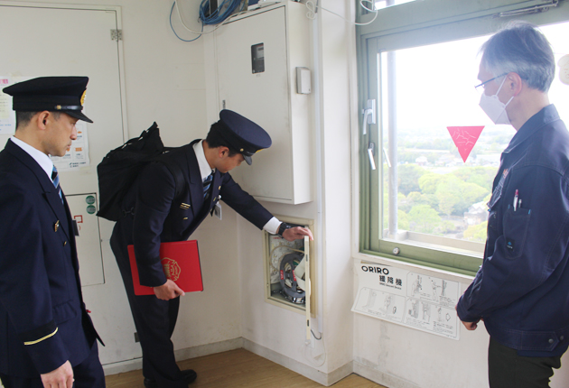 豊橋市消防本部は13日、同市大岩町の豊橋総合動植物公園で「行楽期・特別査察」を行った。ゴールデンウイークを前に、多数の人が出入りする施設の防火体制を調べて従業員の意識を高めた。 同本部職員は、同園の「展望塔」などの防火設備を点検。高所から...
