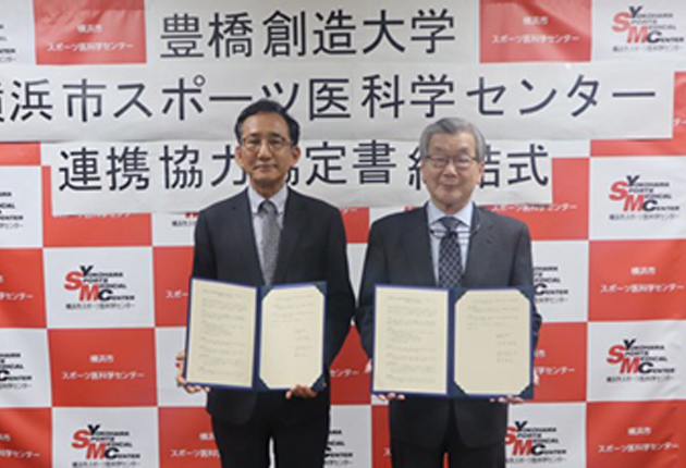 スポーツ理学療法分野における教育、研究、社会貢献の発展を目的に、豊橋創造大学保健医療学部理学療法学科(豊橋市牛川町)と横浜市スポーツ医科学センター(横浜市)は、連携協定を締結した。