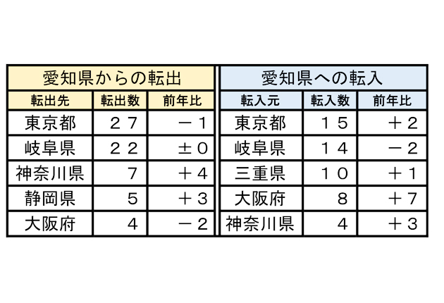 一方、愛知県外からの転入企業は前年比で13社増加し69社となり、過去3番目の多さだった。転入元は「東京都」15社、「岐阜県」14社、「三重県」10社の順。業種別では、全産業の中で「製造業」が6社、「運輸・通信業」が5社の転入超過となり、ものづくり産業が集積する愛知県の特色が表れた。