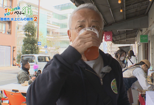 ちょっと疲れてきて、クラフトビールの店に立ち寄る。「Shinnosuke」は、普段は夜だけのお店だが、朝市の時だけ昼飲みできるという。クラフトビールと聞きワクワクする草柳レポーター。ちゃっかり注文し「さわやかでおいしい」といい気分でお店を後にした。