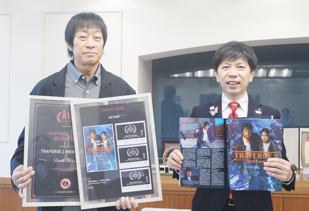 映画「TRAVERSE(トラバース)2―Next・Level(ネクストレベル)―」に主演した、空手道豊空会(豊橋市東新町)始祖師範の田部井(ためがい)淳さん(62)が16日、豊橋市役所に長坂尚登市長を表敬訪問した。同市でロケを行った作品を「命懸けの撮影だった」と見どころを語った。