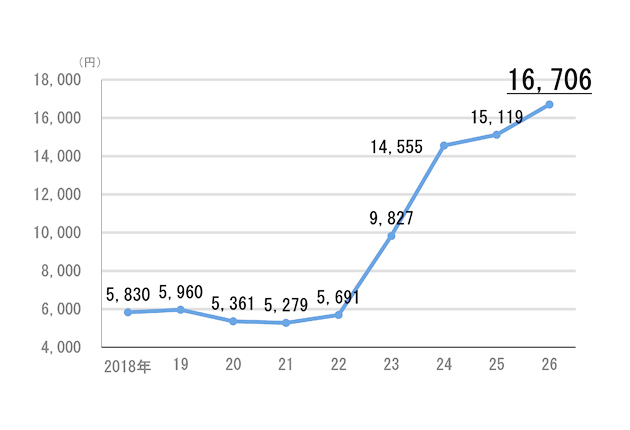 賃上げ平均妥結金額の推移(愛知県経営者協会調べ)