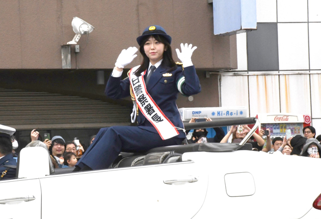 この日、岡崎警察署の一日警察署長を務めたAKB48元メンバーでタレントの峯岸みなみさん(33)がオープンカーに乗って登場すると歓声が沸き起こった。また、市制110周年を記念して12月26日に市民会館で開かれる「岡崎市民歌舞伎」の出演者がPRしたほか、例年はオープンカーで登場する親善都市やゆかりのまちなどの来賓は装飾車に乗って進んだ。