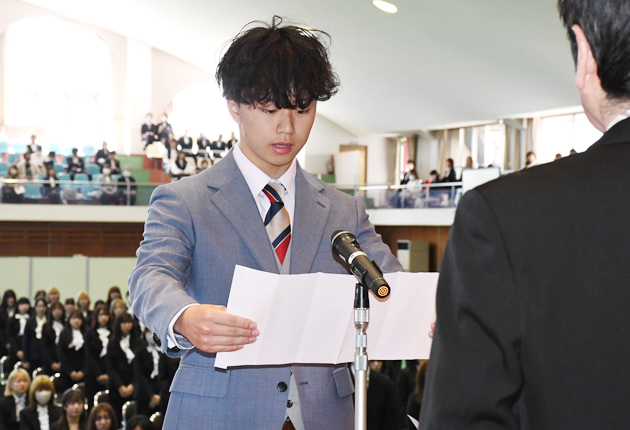 入学生を代表して岡崎大の竹内大翔(おおが)さん(18)=県立豊田東高校出身=が「新しい生活への戸惑い以上の喜びと、大学生活の期待に満ち溢れている。幅広い知識や技能を身につけ、それぞれの夢に向かって周囲の人々と共生しながら自ら新しいことに挑戦していく。なりたい自分になるために努力を惜しまず、日々精進する」と誓った。