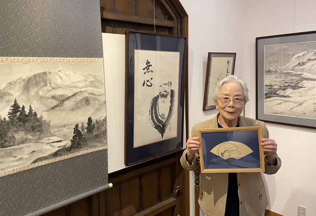 豊川市の元市議、牧田千枝子さん/米寿の水墨画展