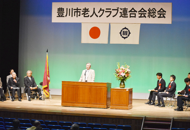 愛称の設定などが承認された市老連の総会(豊川市文化会館で)