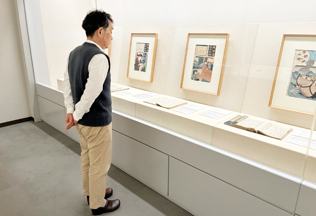 東海道の53の宿場と江戸、京を、「物語」をテーマに浮世絵で表現した「東海道五十三対展 浮世絵のタネ」が、豊橋市二川町の市二川宿本陣資料館で開催されている。浮世絵26点を中心に約70点を展示しており、来場者を楽しませている。