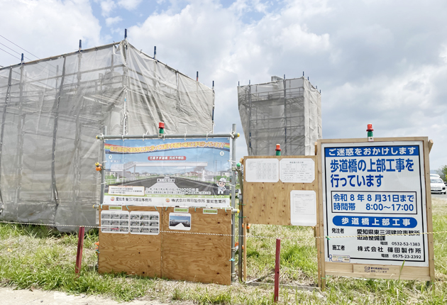 豊川市の三蔵子保育園のすぐ北側で、県道31号・東三河環状線が整備される場所に新たな歩道橋が設置されることになり、県東三河建設事務所による工事が始まっている。 8月31日までの工期で、整備が進んでいる東三河環状線の三蔵子工区間をまたぐ形で設...