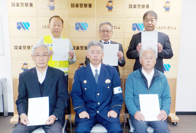 設楽署は23日、同署で愛知県安全なまちづくり条例に基づき、安全なまちづくり推進指導員8人(再任を含む)に委嘱状を交付した。任期は2年。この日の出席者は5人。