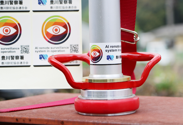 監視の目を模したデザイン/消防用ホースの金属製管鎗などに/豊川署