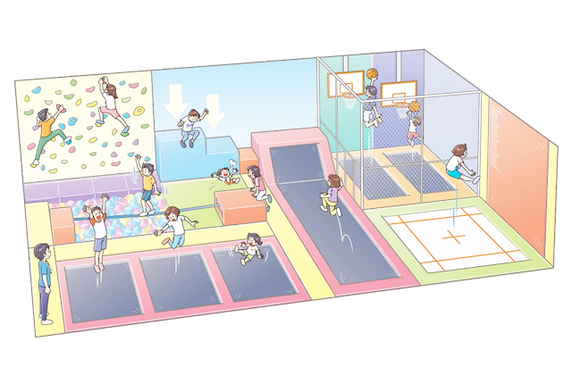トランポリンが設置された施設イメージ(事故事例とは関係ありません)=消費者庁発表資料より