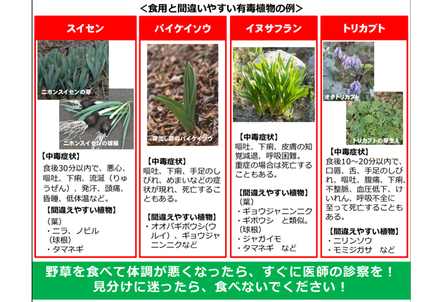 野草の中に有毒のものがあるとして、厚生労働省などはこのほど、ホームページ(HP)などで注意喚起した。