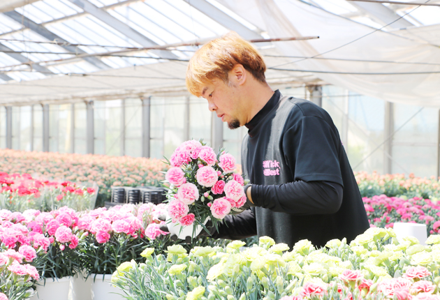 JAひまわり鉢物部会では、部会員のうち14人がポットカーネーションを栽培。母の日向けに計約45万鉢を出荷する見込みだ。JAによると、世界情勢の影響で燃料が高騰し、渇水も心配されたが、品質としては例年並みに仕上がっているという。
