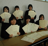 合格の賞状を手にする清水さん(前列中央)たち(豊橋商業高校で)