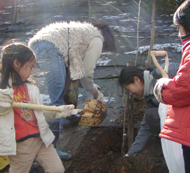 東名高速道路ののり面に植樹する参加者