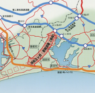 早期実現をめざし同盟会を立ち上げた浜松三ヶ日・豊橋道路構想図(パンフ)