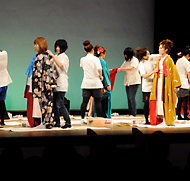 袴着付の実技に挑戦する学生と在校生のモデル