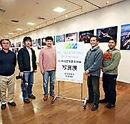写真を出品している今原氏(右)ら航空写真家(セントレアギャラリーで)