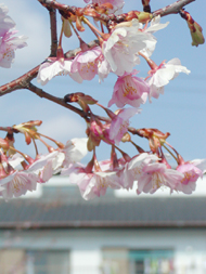 ようやく見ごろを迎えた河津ザクラ(新井公園で)