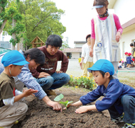 田原市中部保育園(冨田とみ江園長)で14日、園児たちがカボチャを育てて大きさを競う「ジャンボカボチャコンテスト」用のカボチャの苗の植え付けが行われた。 同コンテストは、田原市4Hクラブ連絡協議会(鈴木昌俊会長)の主催で98年から開かれてお...