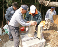 石碑の整備を行う保存会のメンバー(保存会提供)
