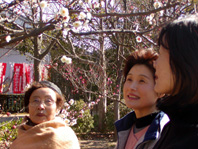 親子三代で梅の花を愛でる人も(向山梅林園で)