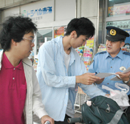 情報提供を呼びかける豊川署員(名鉄国府駅前で)