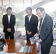 38年ぶりに社会人野球都市対抗野球大会に出場を決めた東海理化硬式野球部の平井善明部長、平塚剛広監督、佐々木芳輝専務取締役ら計6人が2日、豊川市役所に山脇実市長を表敬訪問した。 東海理化は先月28日、岡崎市民球場で王子製紙(春日井市)を延長...